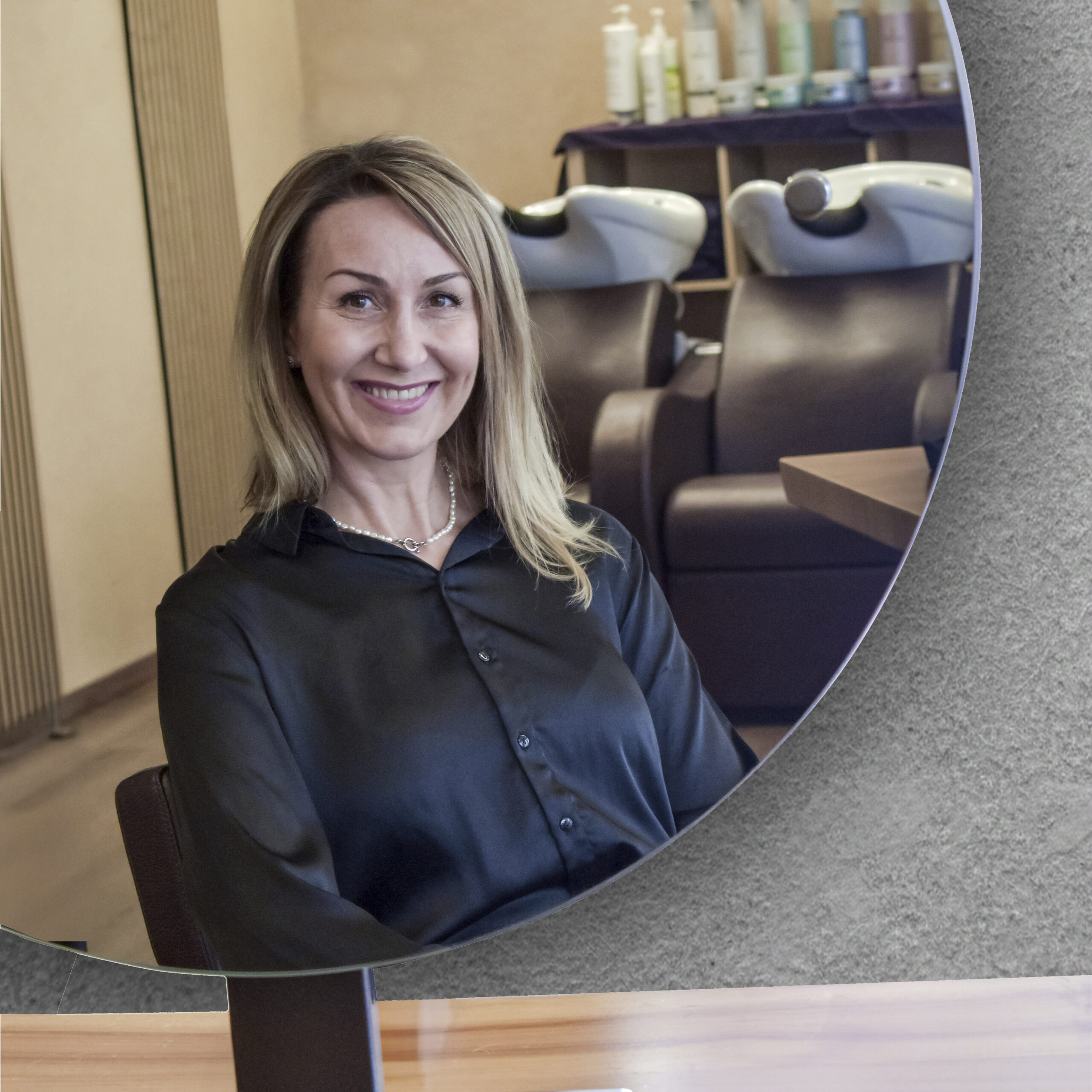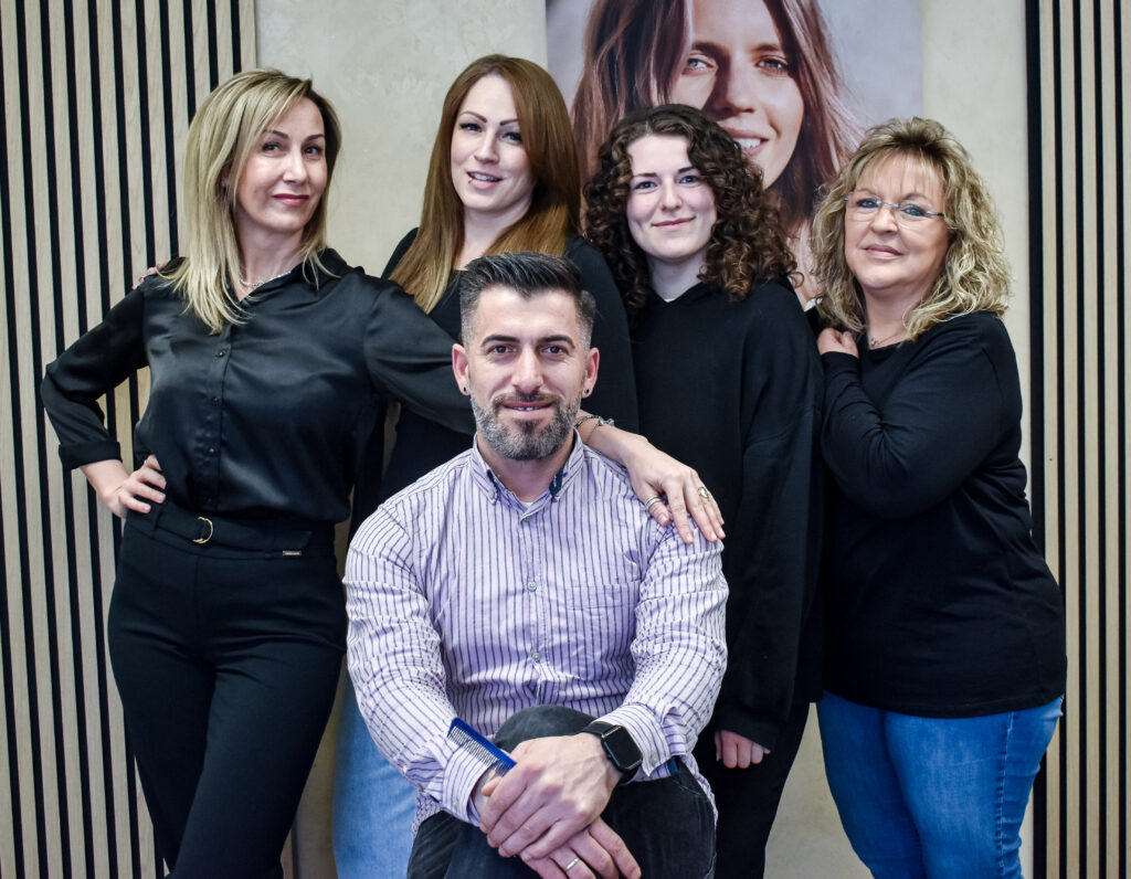 In unserem Salon werden Sie von sieben Friseurinnen und einem Barbier begrüßt. Wir alle lieben unsere Arbeit von ganzem Herzen und unser höchstes Ziel ist, Sie mit einem Lächeln im Stuhl sitzen zu sehen.